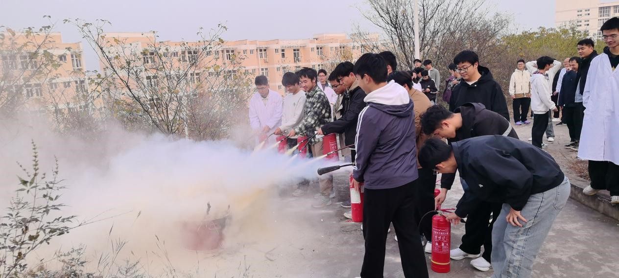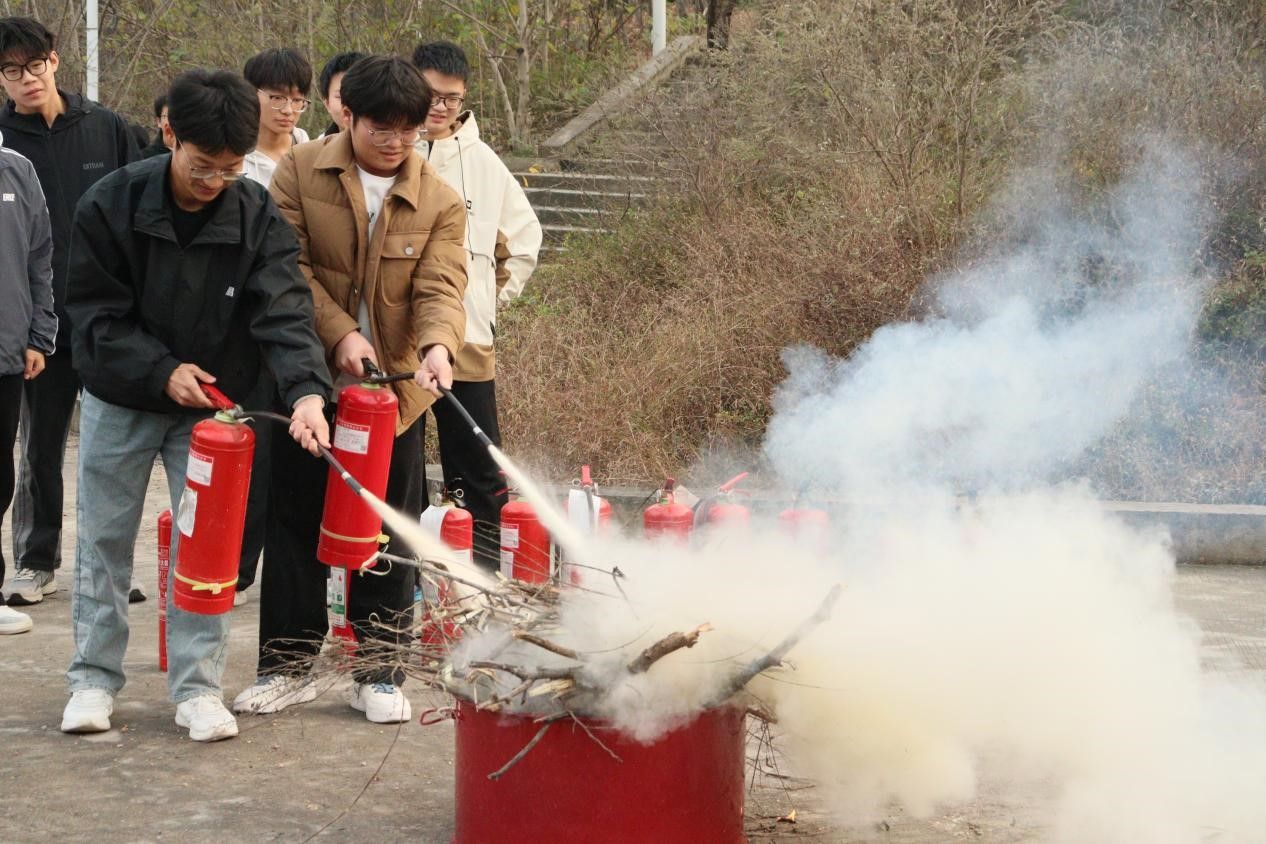 在全体师生安全撤离至集结地点后,活动进入灭火实战演练环节。学校保卫处陈红兵科长首先详细讲解了干粉灭火器与二氧化碳灭火器的适用范围、操作要领及注意事项,并进行了标准的操作演示。在认真观摩后,师生们踊跃参与,分批上前,在专业人员的指导下,亲身体验了如何使用灭火器扑灭初起“火灾”。通过“一提、二拔、三握、四压”的实操,大家将理论知识转化为实战技能,有效提升了扑救初起火灾的能力。